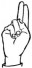 На ћирилици написано АНДЈЕЛИНА СТОЈКОВАЦ састоји се из 18 слова [?]. Исписано ћириличном једноручном азбуком за глувонеме: